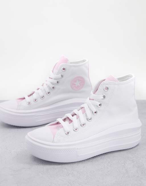 Converse – Chuck Taylor – Move – Vita sneakers med ljusrosa detaljer