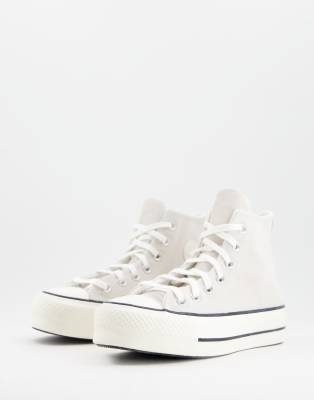 Converse – Chuck Taylor – Naturvita, fodrade platåsneakers i mocka