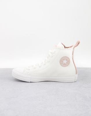 Converse – Chuck Taylor – Naturvita sneakers i läder med höga skaft och snören av teddy