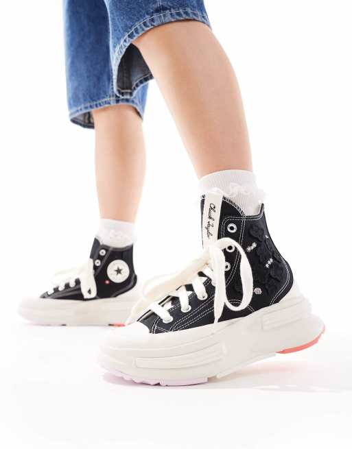 Converse – Run Star Legacy Hi CX – Svarta sneakers med blommor i organza
