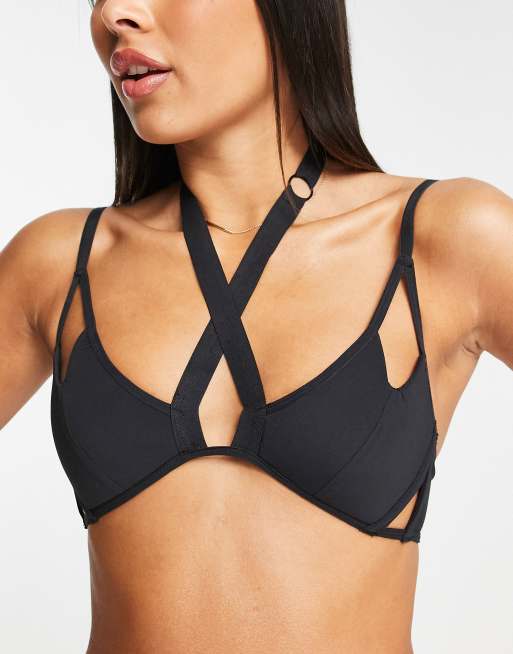 Cosmogonie – Svart trekantsbralette med remmar och utskurna detaljer, endast hos ASOS - BLACK