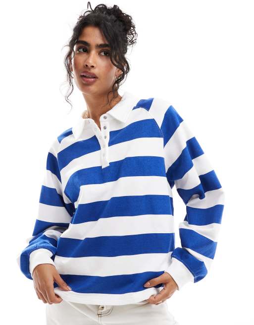Cotton On – Blårandig, mysig sweatshirt i pulloverstil med knappar