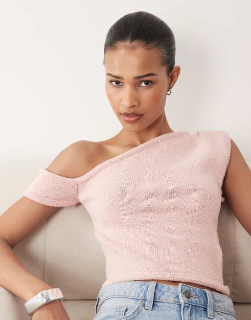 Cotton On – Blekrosa, glittrig och stickad topp med textur och asymmetrisk ringning