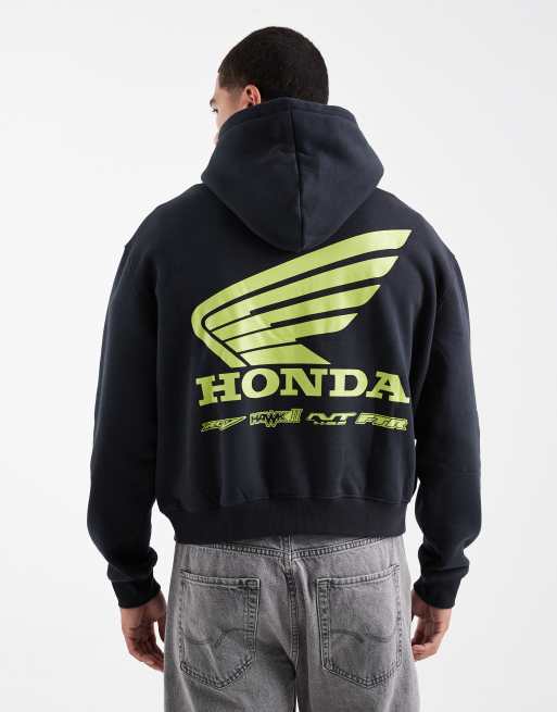 Cotton On – Bleksvart, kort huvtröja med Honda-tryck
