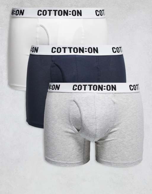 Cotton On – Ljusgråmelerade, marinblå och vita boxershorts, 3-pack