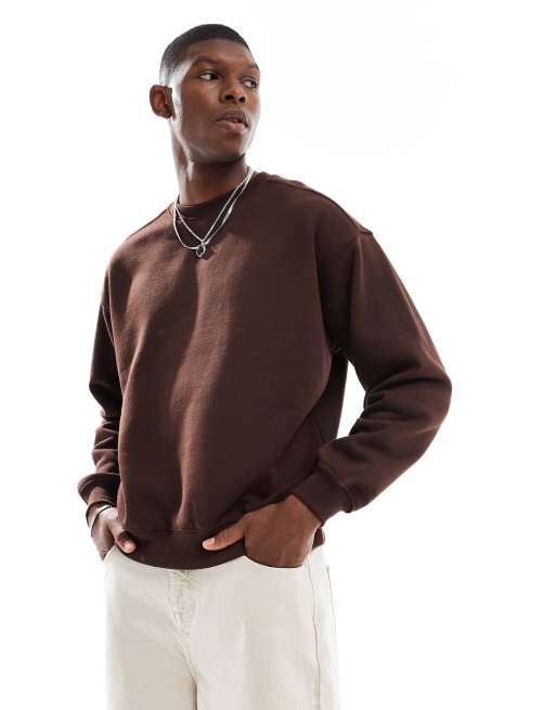Cotton On – Mörkbrun, boxig sweatshirt i fleece med rund halsringning