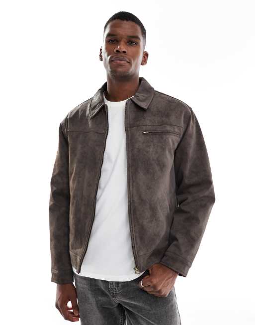 Cotton On – Mörkgrå, kort Harrington-jacka i mockaimitation