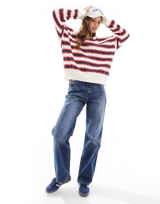 Cotton On – Rödrandig tröja med rund halsringning