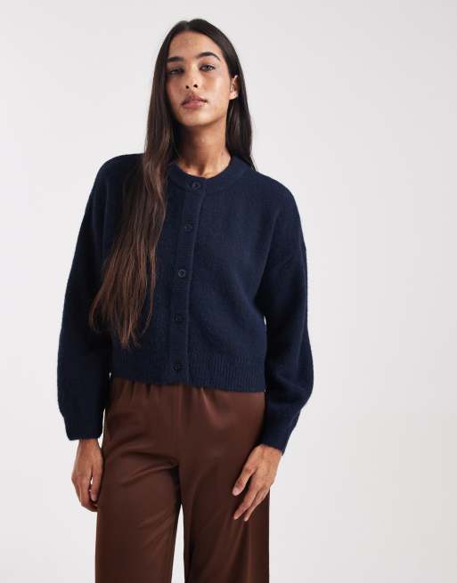 Cotton On – Stålblå, tvättad kofta med knäppning