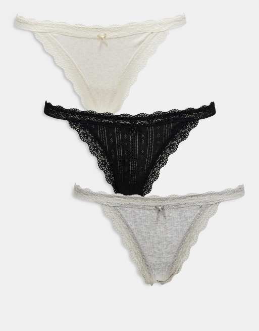 Cotton On – Svarta, grå och beige trosor med g-string, i flerpack