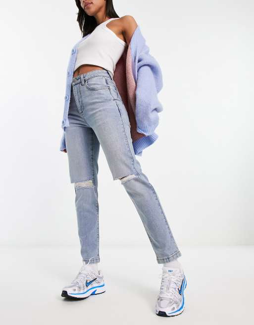 Cotton On – Blå mom jeans med knärevor och stretch