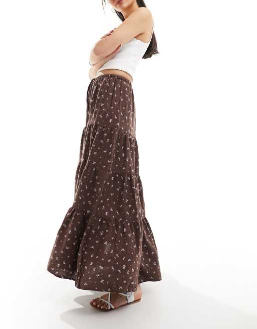 Cotton On – Brun, småmönstrad, panelsydd maxikjol i boho-stil