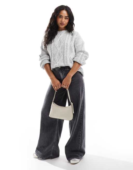 Cotton On – Gråmelerad, kabelstickad tröja i oversize