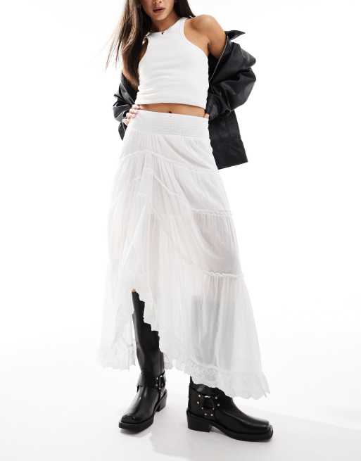 Cotton On – Midikjol med asymmetrisk fåll och spetspaneler