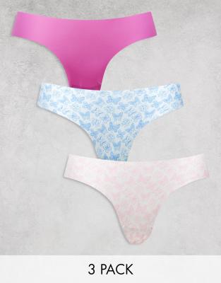 Cotton On – Olikfärgade, fjärilsmönstrade, osynliga stringtrosor, 3-pack