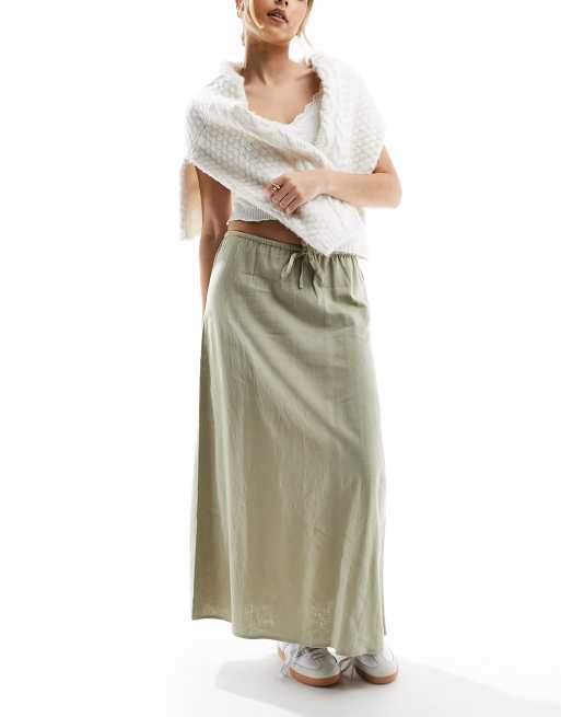 Cotton On – Salviagrön shiftkjol i maxilängd av linne