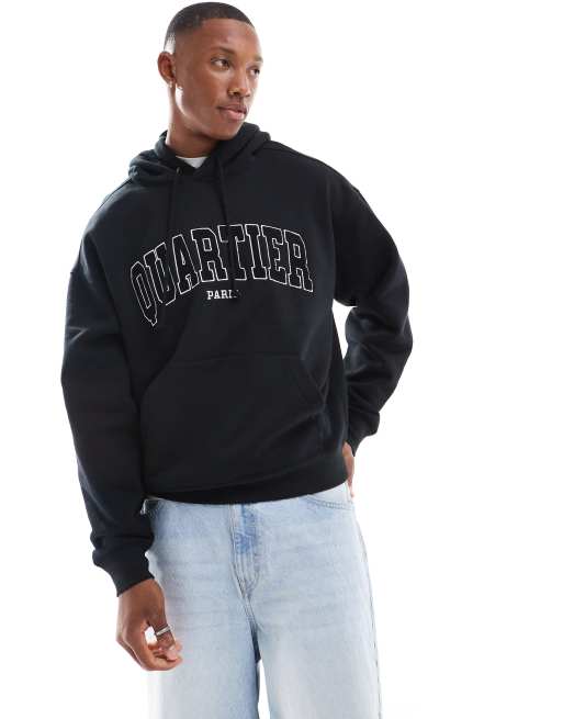 Cotton On – Svart huvtröja med boxig passform och Paris-tryck
