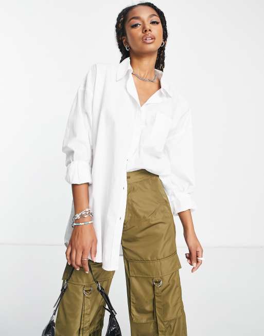 Cotton On – Vit, ledig skjorta i dad-modell av poplin