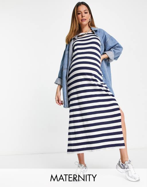 Cotton:On Maternity – Blårandig, ärmlös maxiklänning med ledig passform