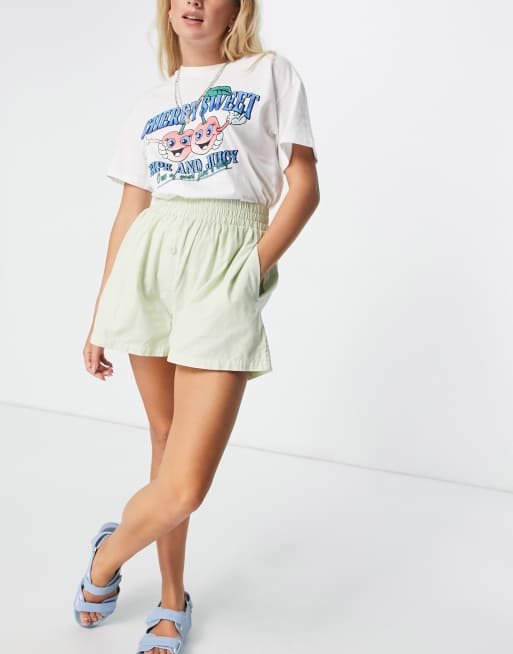 Cotton:On – Mintgröna randiga dra på-shorts med hög midja