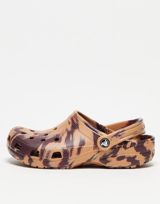 Crocs – Bruna klassiska tofflor i unisex-modell med marmorerat mönster