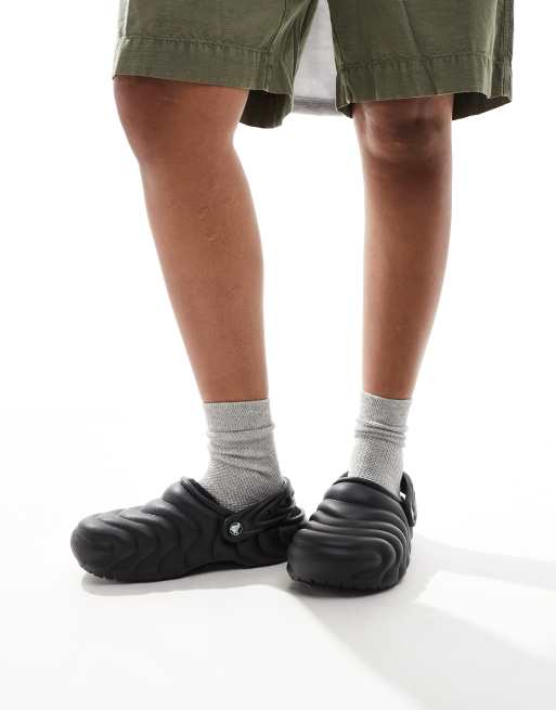 - Crocs är kända för sina distinkta och färgglada designer och deras ikoniska skor gör nu en comeback. De är tillverkade i vattentåligt material, med formad sula och lätt skumdämpning. Märkets skor är gjorda för att vara superbekväma och ge dina fötter stöd (det är dom värda). Skrolla vår edit Crocs på ASOS för allt från batikfärgade, klassiska skor, grova platå-modeller och fuskpälsfodrade Crocs, till marmormönstrade tofflor och strumpor med loggor. Solemate: hittad.