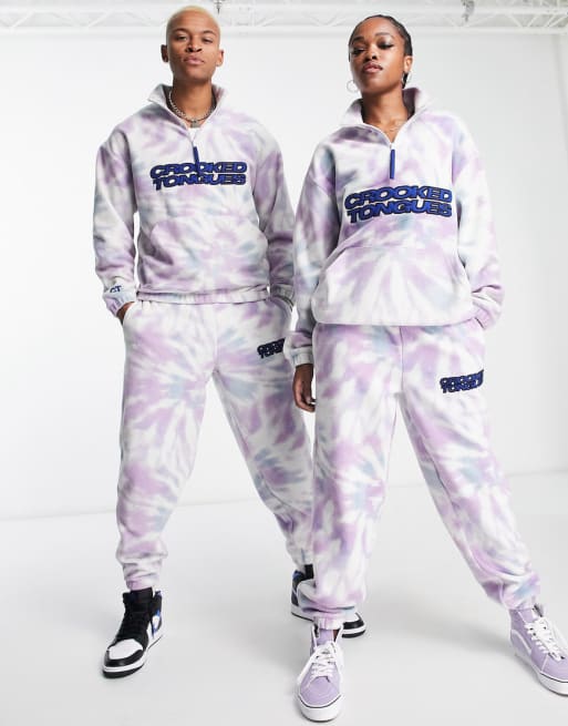 Crooked Tongues – Unisex - Heltäckande batikmönstrat polarfleece set med broderi