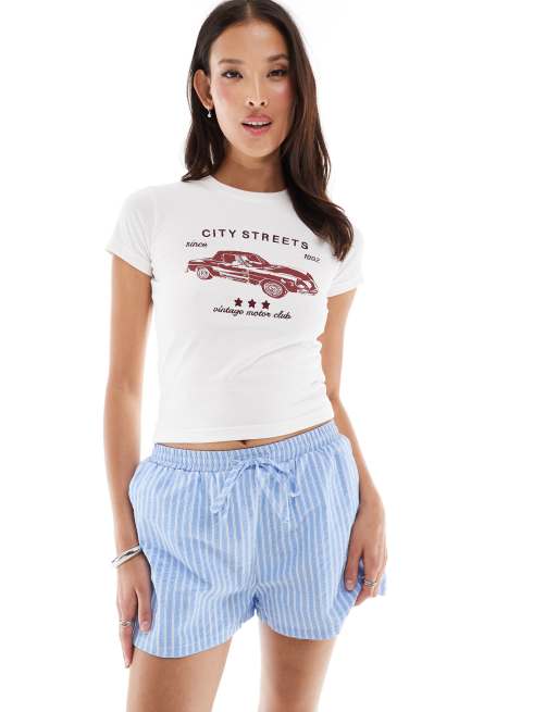 Daisy Street – Blårandiga boxershorts med elastisk midja och knytning framtill