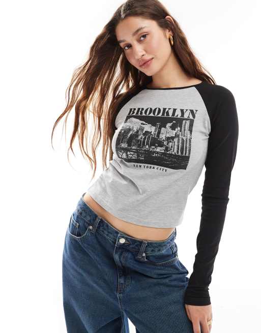 Daisy Street – Brooklyn – Grå och svart, liten t-shirt med raglanärmar