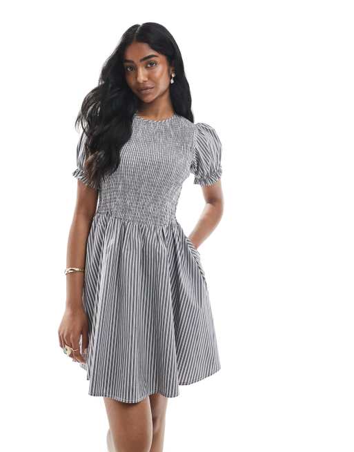 Daisy Street – Flerfärgad, randig miniklänning med puffärmar och smockad byst