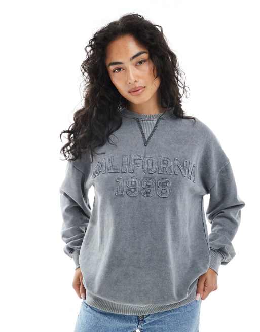 Daisy Street – Gråmelerad sweatshirt i oversize med tryck