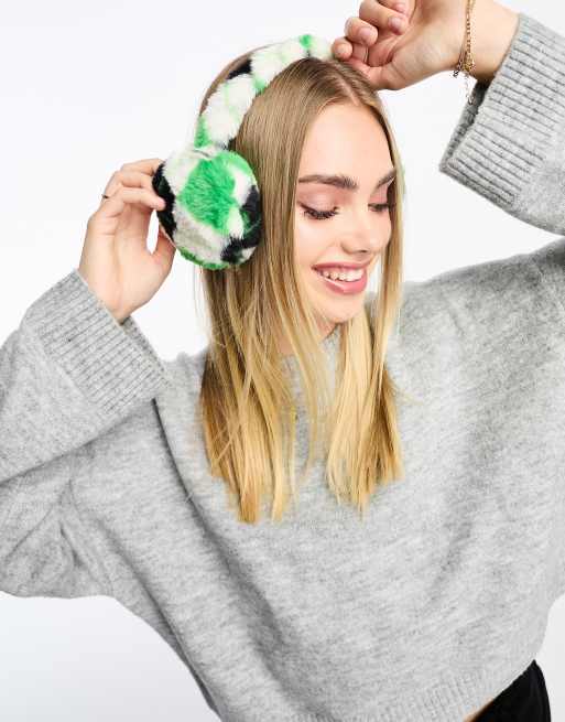 Daisy Street – Gröna och svarta, argyle-mönstrade öronmuffar i fuskpäls