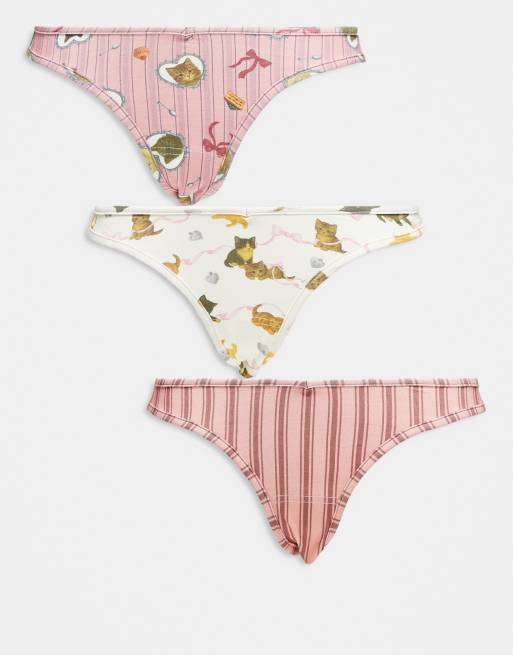 Daisy Street – Rosa och kattmönstrade trosor, 3-pack