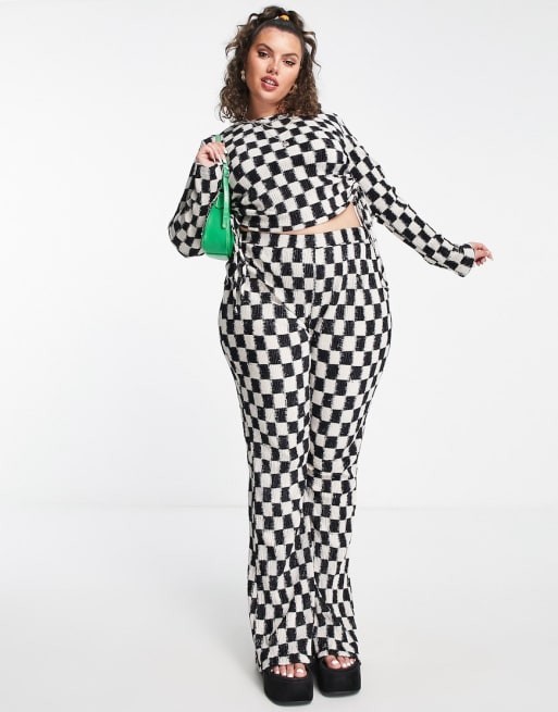 Daisy Street – Schackrutigt, plisserat set i sammet med crop top och byxor