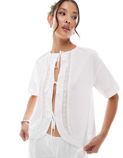 Daisy Street – Vit topp i broderie anglaise med knytning framtill, del av set