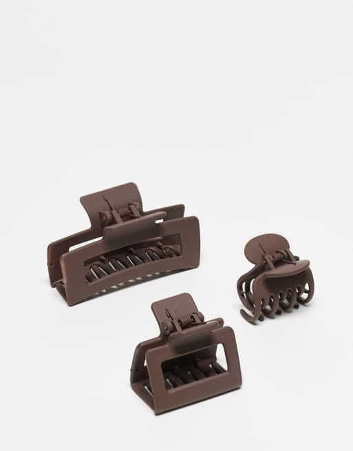 DesignB London – Chokladbrun hårklämma, 3-pack