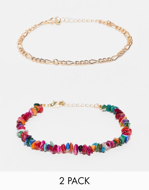 DesignB London – Fotlänk med flerfärgade pärlor och kedja, 2-pack
