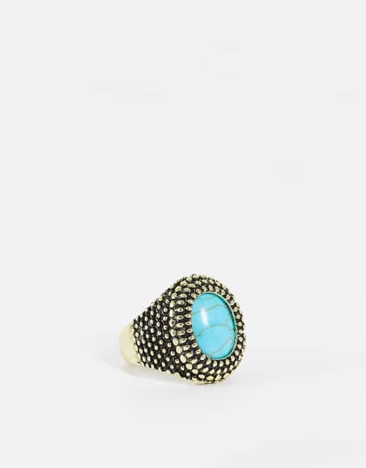 DesignB London – Guldfärgad, graverad ring med turkos sten