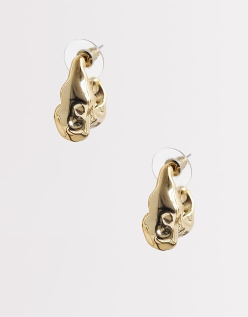 DesignB London – Guldfärgade creoler med smält, ojämn design