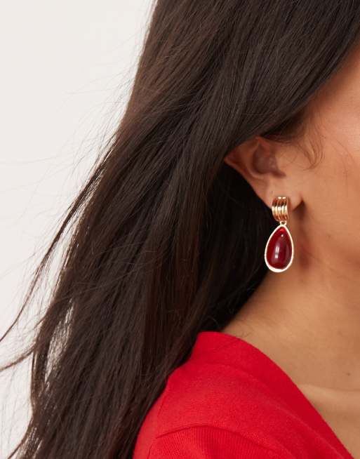 DesignB London – Guldfärgade, droppformade örhängen i röd harts