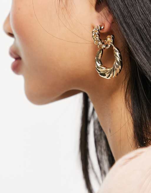 DesignB London – Guldfärgade örhängen med tvinnad dörrklappsdesign i 80-talsstil