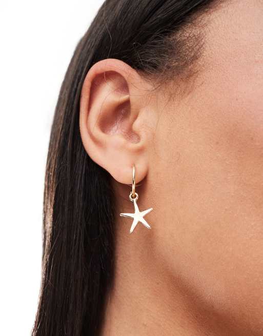 DesignB London – Guldfärgade små creoler med stora sjöstjärnor