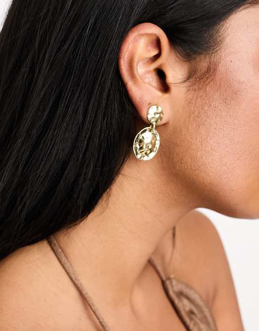 DesignB London – Guldfärgade stiftörhängen med hamrad design