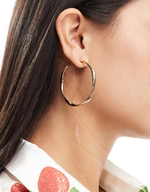 DesignB London – Guldfärgade stora creoler med vågformad design
