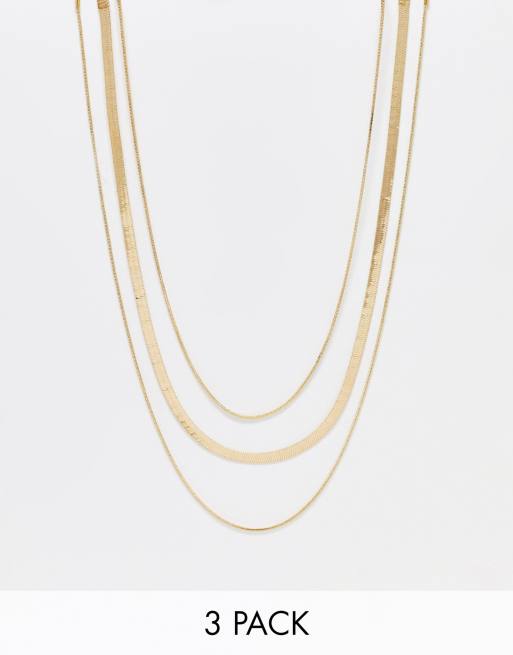 DesignB London – Guldfärgat halsband, 3-pack