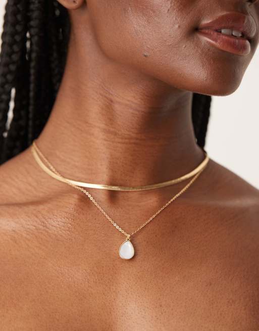 DesignB London – Guldfärgat halsband i flera rader med halvädelsten