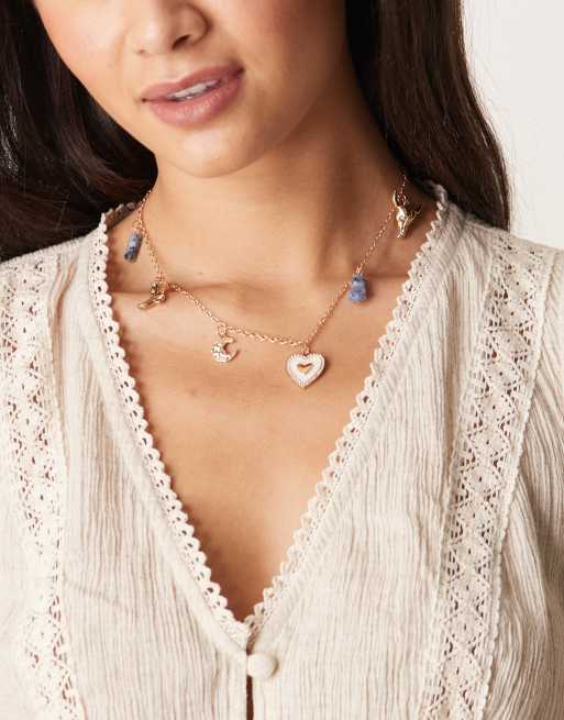 DesignB London – Guldfärgat halsband med flera hängsmycken i cowboystil