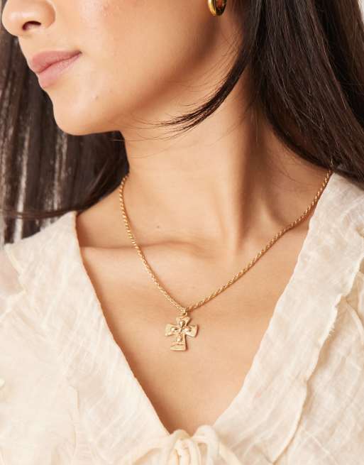 DesignB London – Guldfärgat halsband med korshänge i bohostil