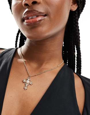 DesignB London – Guldfärgat halsband med pärla och kors