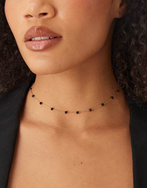DesignB London – Guldfärgat halsband med svarta stenar